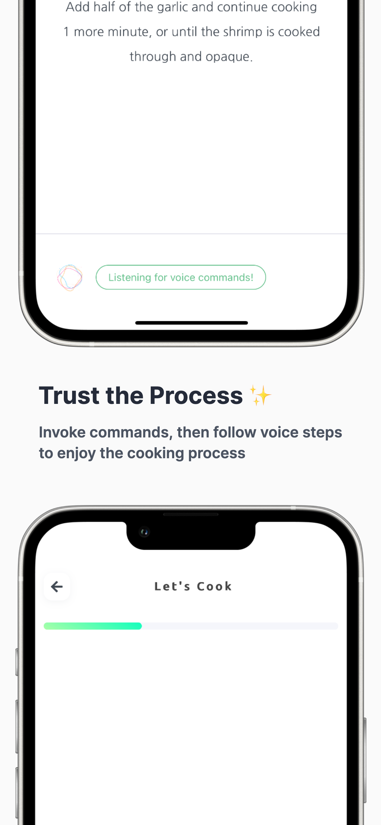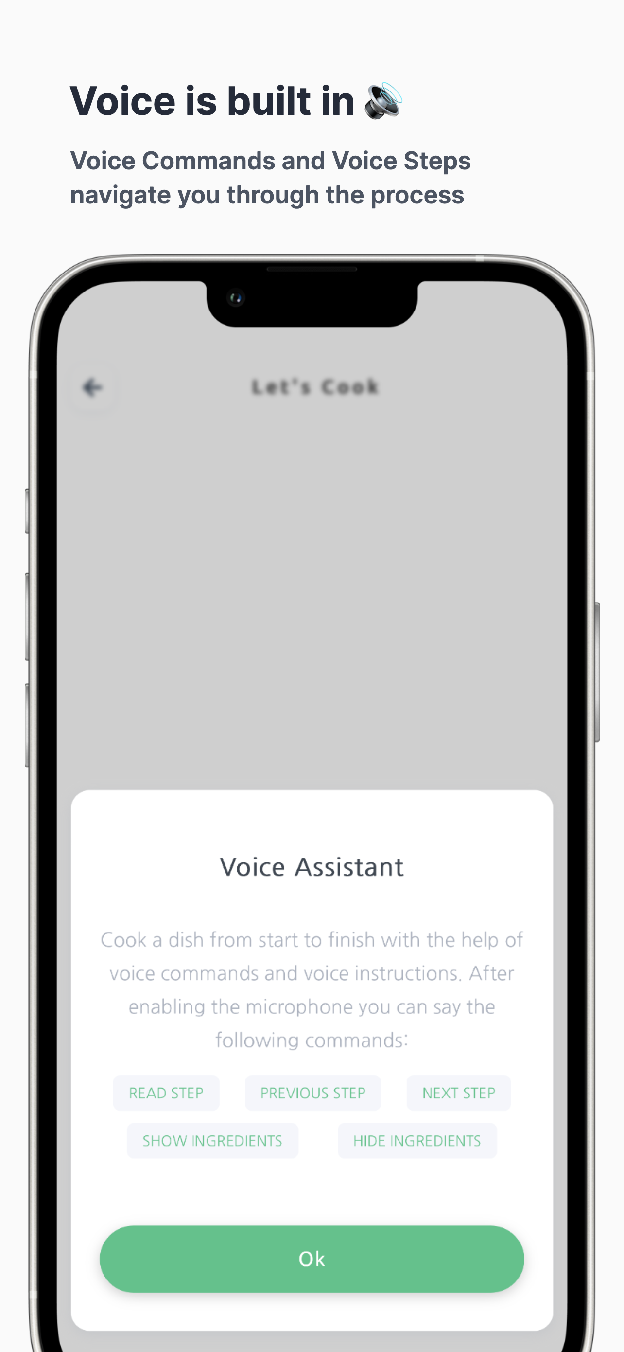 Take full control of your cooking experience — without ever touching your screen. Just enable your microphone and say what you need.